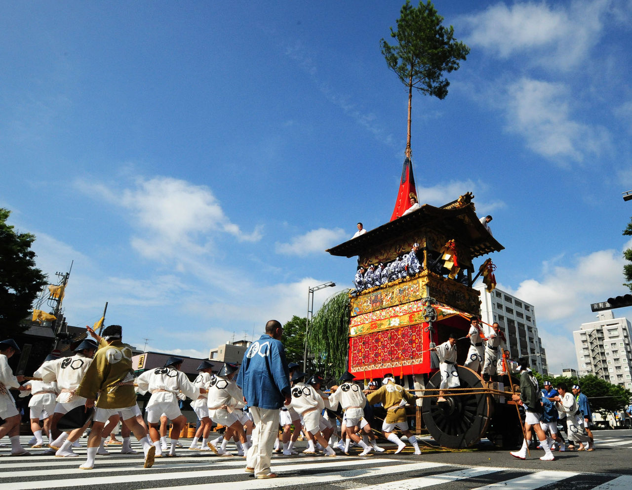 祭りの殆どは江戸時代(1603~1868)まで遡ります。18府県で伝統技術を活かし、漆や染物でデコレーションされた木製や金属製の山や鉾などの山車を担ぎ歩く祭礼が行われていました。