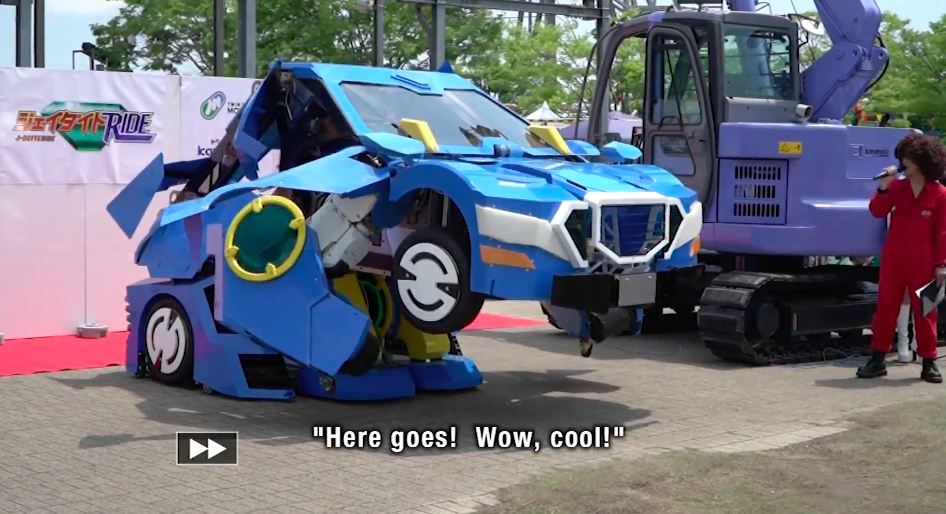 これは世界で初めての、コックピットに人を載せたままロボットに変形する車です。