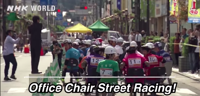 このレースは事務用椅子で2時間耐久のリレーレースです。参加者は炎天下の中、過酷なレースと闘わなければなりません。トップのチームは22キロメートルも走りました。東北で一番素晴らしいといわれている椅子も登場。